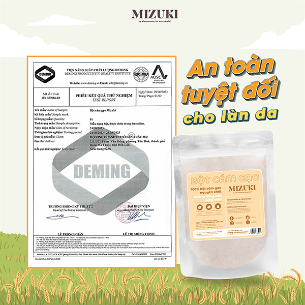 Bột cám gạo Mizuki có đầy đủ các giấy chứng nhận kiểm định, cam kết thuần chay và không thử nghiệm trên động vật, đảm bảo độ thân thiện với môi trường.