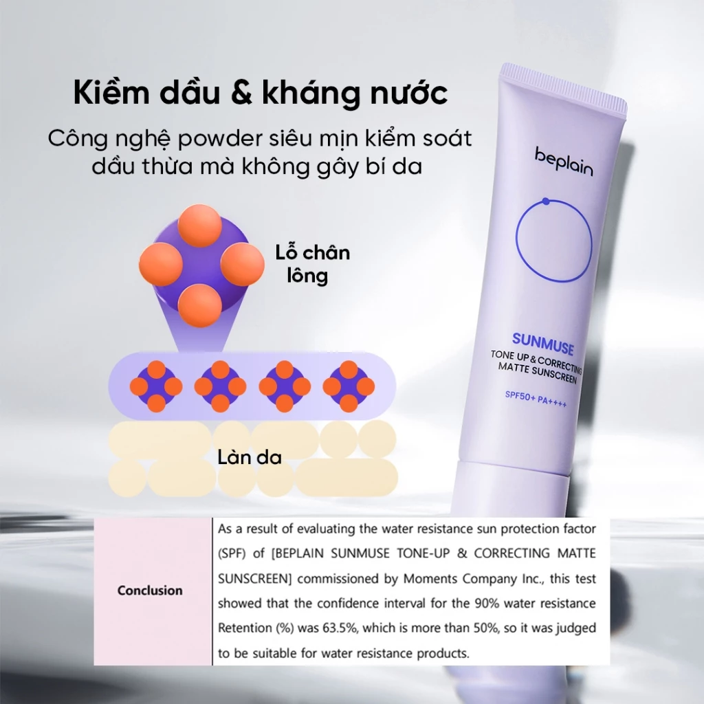 Kem Chống Nắng Beplain Sunmuse Tone Up & Correcting Matte Sunscreen SPF50+ PA++++ Nâng Tông, Kiềm Dầu Mịn Lì 50ml hiệu chỉnh tông màu, chống nắng đỉnh cao kiềm dầu vượt trội với công nghệ powder siêu mịn kiểm soát dầu thừa mà không gây bí da.