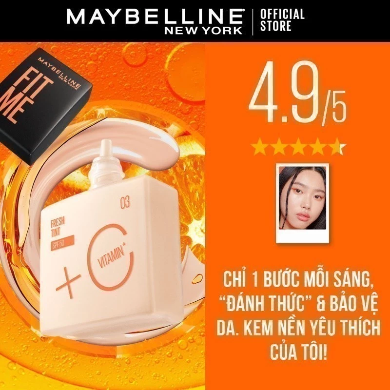 Fit Me Fresh Tint là bộ sưu tập kem nền mới thuộc dòng sản phẩm Fit Me nổi tiếng rất được ưa chuộng của thương hiệu Maybelline New York. Với thành phần Vitamin C, Fit Me Fresh Tint mang đến lớp nền sáng mỏng nhẹ, giúp da tươi mướt “như da thật” mà bạn mong muốn MỖI NGÀY.