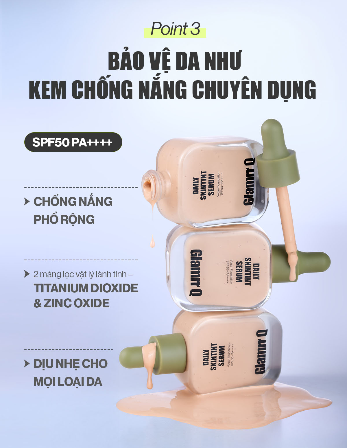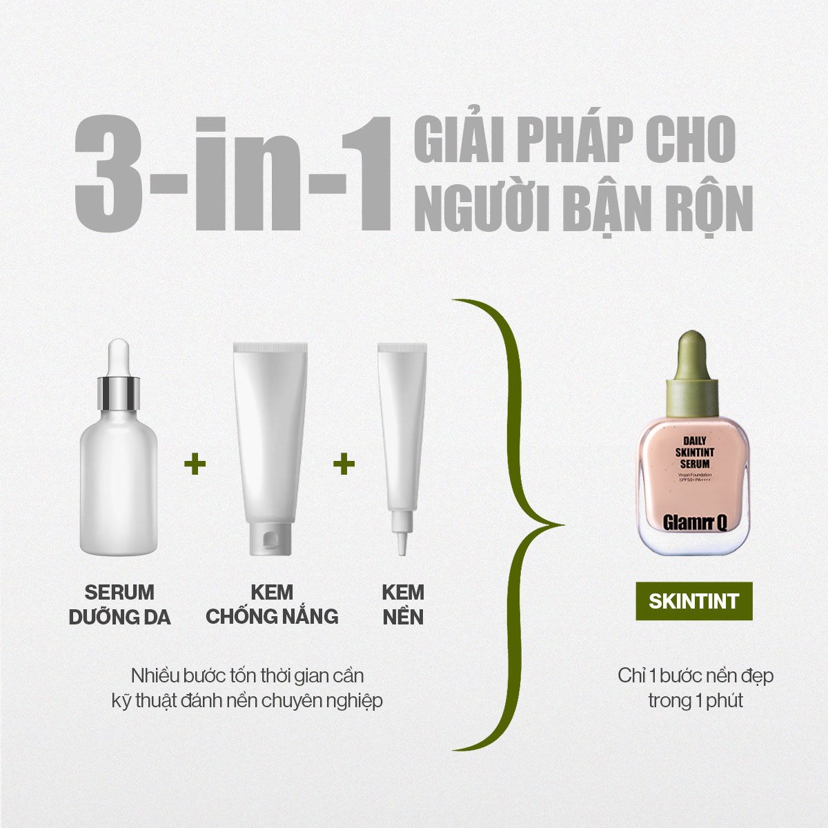 Kem nền Serum Căng Bóng Glamrr Q Daily SkinTint Serum Vegan Foundation SPF50 PA++++ 30ml