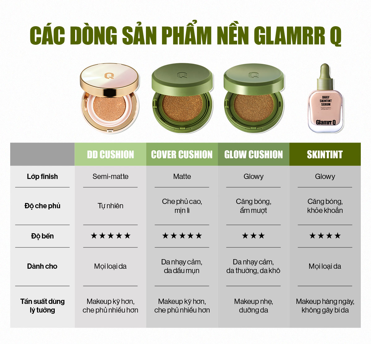 Mang tầm nhìn Thương Hiệu Trang Điểm Dành Cho Làn Da Nhạy Cảm, Glamrr Q chú trọng phát triển các dòng sản phẩm lành tính, dịu nhẹ với tiêu chí khắt khe về thành phần, nhưng vẫn mang lại hiệu quả sử dụng khi trang điểm