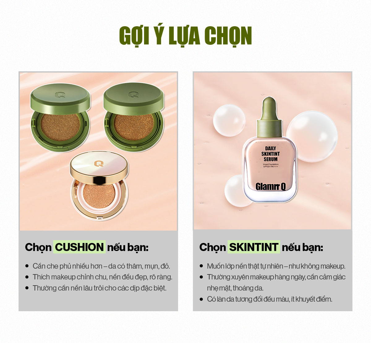 Glamrr Q Daily SkinTint Serum Vegan Foundation là lựa chọn lý tưởng cho làn da bận rộn thuộc “Thế hệ Skintint Mới”: nhanh – gọn – đẹp chỉ trong 1 phút. Công thức 3-trong-1 kết hợp trang điểm, dưỡng da và chống nắng, mang đến lớp nền mỏng nhẹ như không, hiệu ứng glowy tức thì, bám lâu suốt 12 giờ.