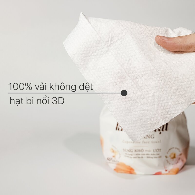 Khổ khăn cực lớn, có các hạt bi nổi 3D giúp làm bề mặt dễ dàng hơn nhưng vẫn giữ lại độ ẩm cần thiết, không gây khô ráp, khó chịu.