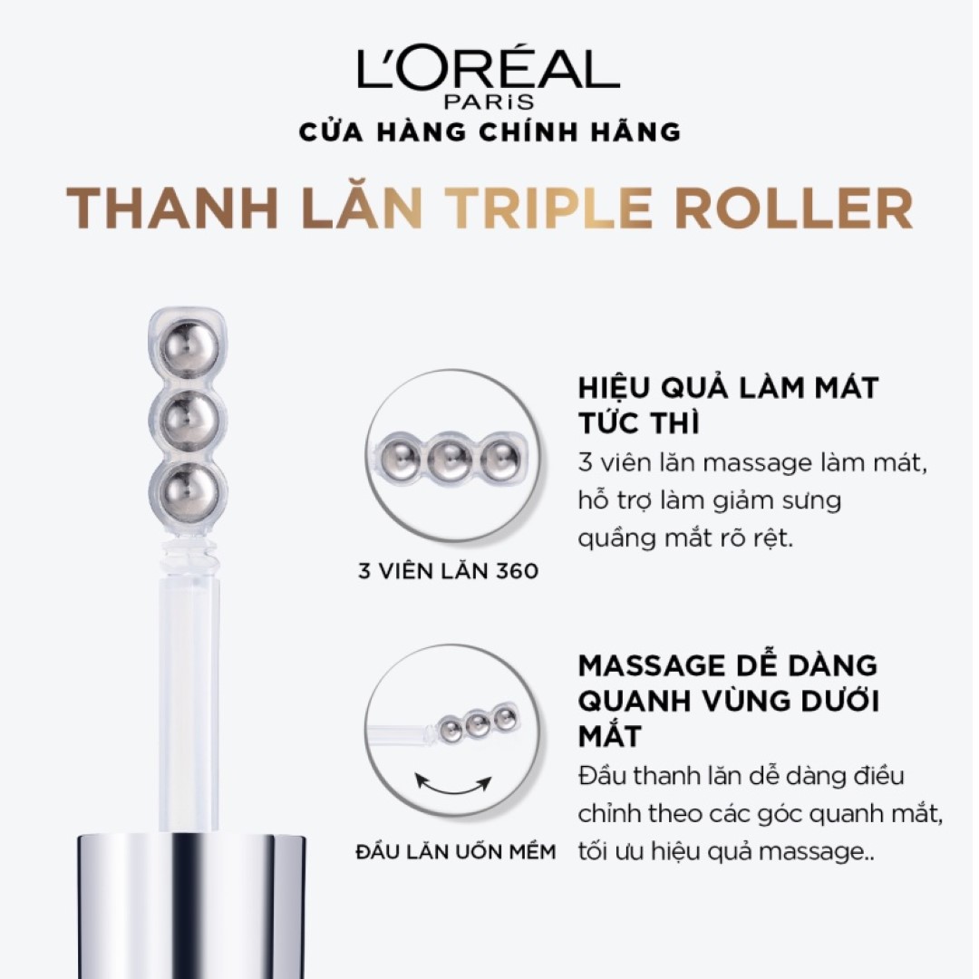 3 viên lăn massage làm mát, hỗ trợ làm giảm sưng quầng mắt rõ rệt.