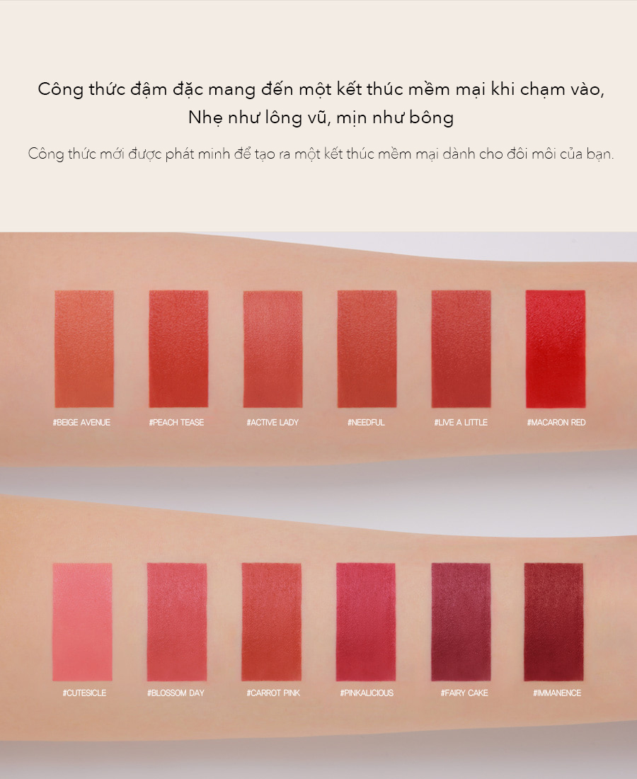 Son Kem Lì 3CE Mịn Nhẹ Như Mây 4g với bảng màu đẹp và đa dạng, hiện đã có mặt tại FULU: