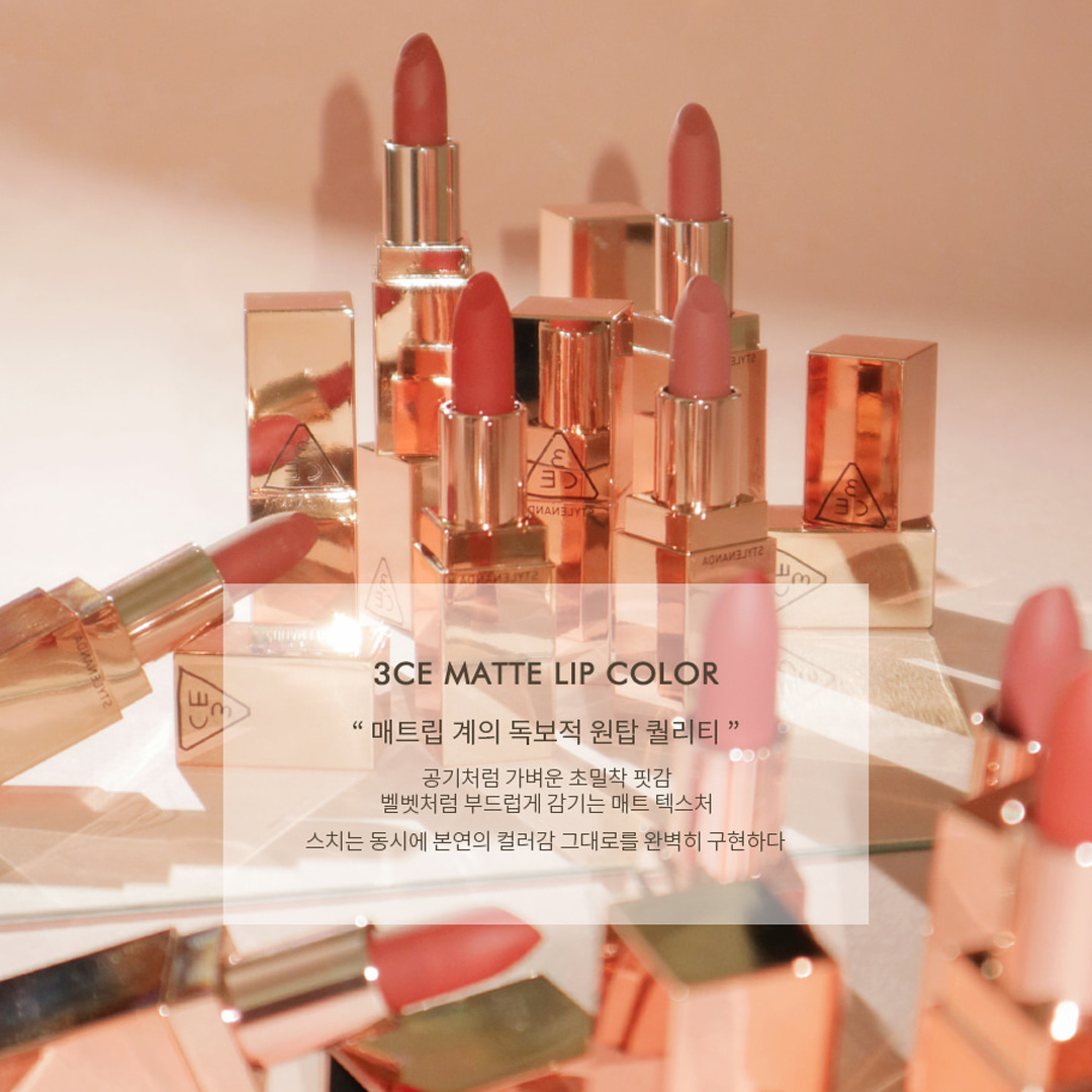 Son Thỏi Lì 3CE Soft Matte Lipstick 3.5g hiện đã có mặt tại FULU với 8 màu cho bạn có thể thỏa sức lựa chọn: