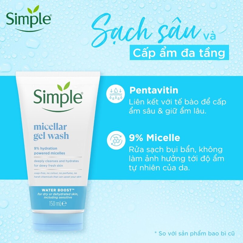 Sữa Rửa Mặt Simple Dưỡng Ẩm Cho Da Dạng Gel 150ml là dòng sữa rửa mặt đến từ thương hiệu mỹ phẩm Simple của Hà Lan, chứa thành phần Citric Acid giúp loại bỏ các bụi bẩn, bã nhờn, lớp trang điểm sót trên da hiệu quả đồng thời kết hợp cùng các thành phần Glycerin và vitamin E có khả năng giữ độ ẩm tự nhiên của da đem đến làn da mềm mại, mịn mượt sau khi làm sạch.