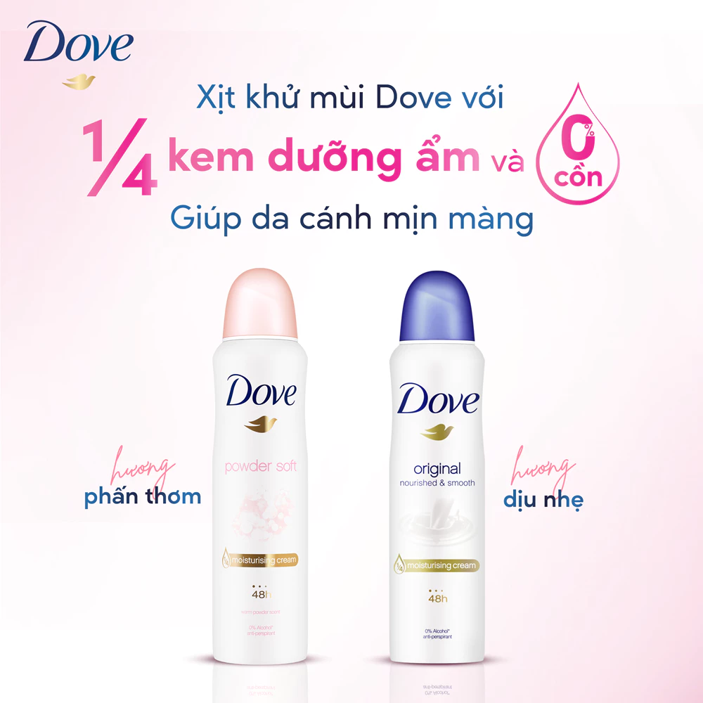 Xịt Khử Mùi Dove Dưỡng Da Sáng Mịn Hương Phấn Thơm 135ml (mẫu mới) - Powder Soft
